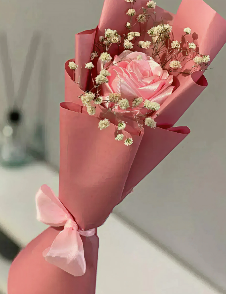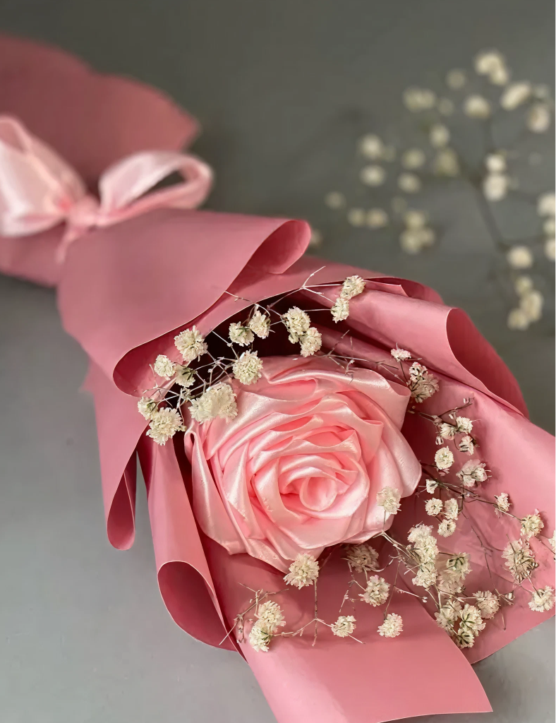 Premium Satin Craftsmanship: A singular, oversized rose meticulously hand-formed from lustrous pink satin for a realistic yet everlasting glow.