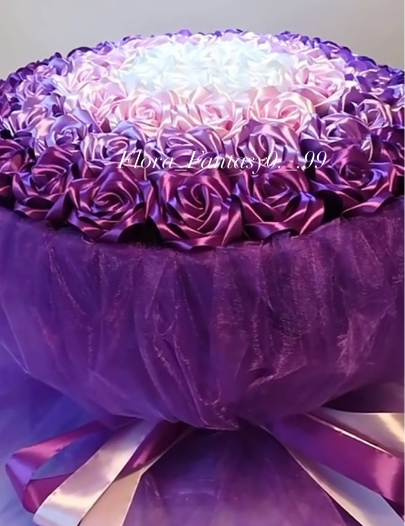 Crafted for those who appreciate the extraordinary, this arrangement combines the timeless shape of a classic rose dome with a modern, high-fashion color palette. Because these “blooms” are crafted from high-quality satin, the rich purples and soft whites will remain vibrant forever, serving as a lasting reminder of a special day. It is the ultimate choice for an occasion that deserves nothing less than royal treatment.